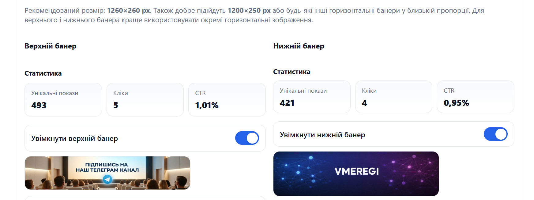 Верхіній баннер - 500 грн/30днів