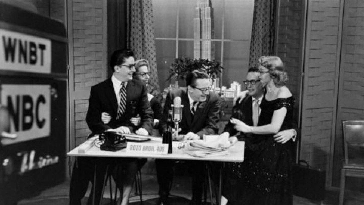TV goes Hollywood when Steve Allen visits Universal-International to prepare for his upcoming title role in "The Benny Goodman Story."
