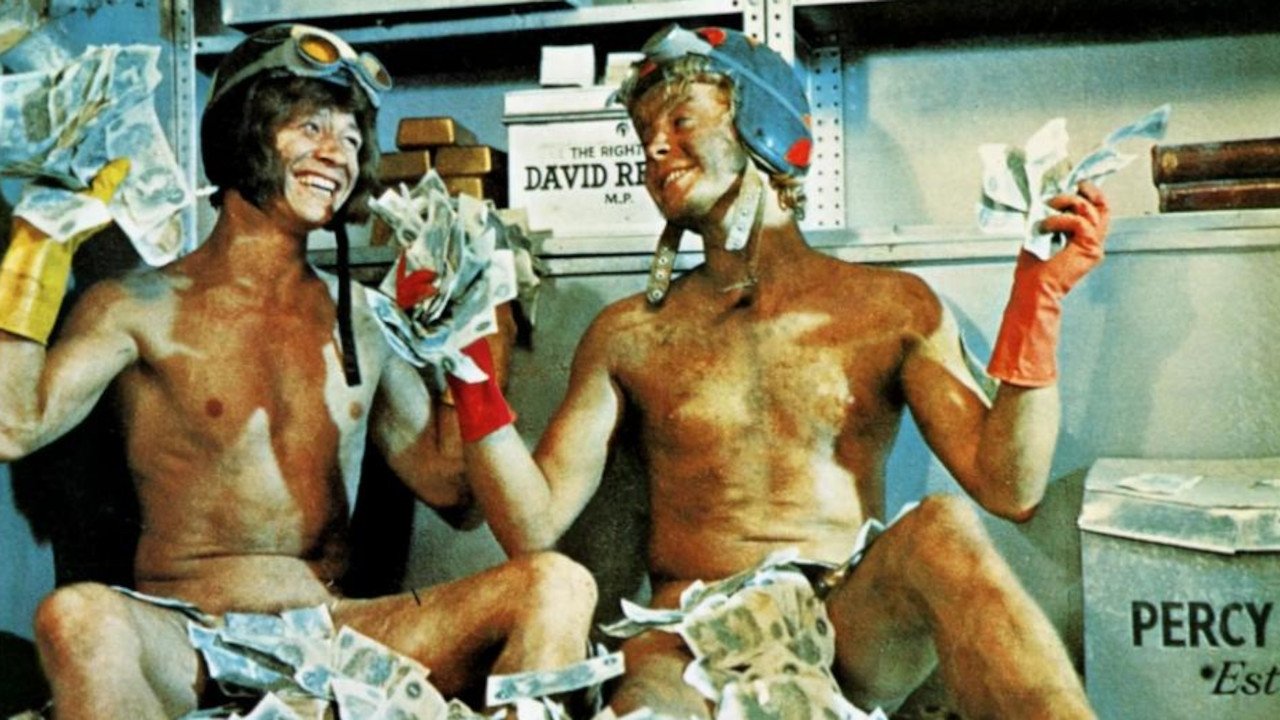 Two bank robbers, Dennis and Hal, are on the run from the police after a successful heist. Needing somewhere to hide the loot, they turn to a funeral parlour where they stash the cash in Hal's recently-deceased mother's coffin. Taking the coffin, they turn to Hal's father and hide it in the bathroom of his hotel. Before long the hotel is host to the eccentric Inspector Truscott.