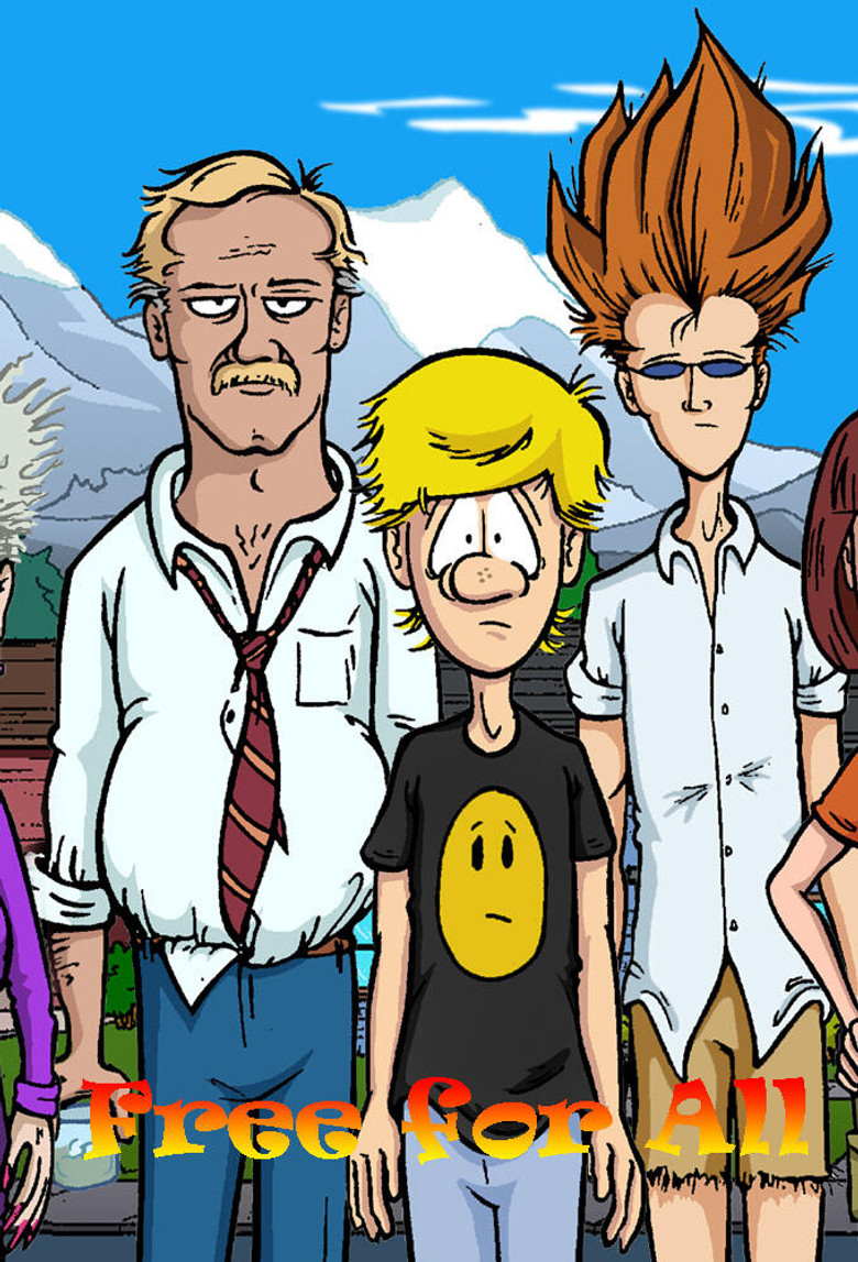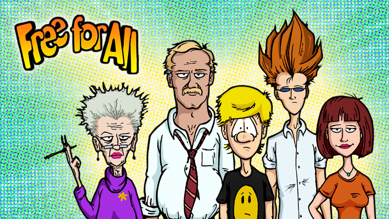 Free for All is a 2003 animated series that aired on Showtime. The series was created by Brett Merhar. It followed the day-to-day life of Johnny Jenkins, an innocent 19-year-old college kid who has to deal with a bitter, cigarette smoking grandmother and a coarse, sometimes-violent, alcoholic father, in a rather dysfunctional family. Also, he lives next door to Paula, the love of his life and the attractive girl next door. Clay Zeeman is his somewhat abusive so called "best friend" who won millions of U.S. dollars after he faked an accident at a taco restaurant. He has a drug-addicted ferret for a pet, and he's named Angus. Omar is his warm Indian friend, who is just as innocent as Johnny himself is. He may be even stupider on some level. The show was developed for television by Merriwether Williams, the head writer for seasons 1-4 of Spongebob Squarepants. WIlliams was also the show runner and head writer. There were seven episodes that aired over the summer of 2003, the last ending on a cliff-hanger. However, despite favorable reviews from critics, the show had very low ratings, mainly due to poor promotion and the fact that the original source material was not a huge success in the first place. Showtime cancelled the animated skein shortly after the last episode aired. The show has since fallen into extreme obscurity. No DVD/VHS/Laser Disc release has been announced yet. The entire series is available on iTunes and Amazon.com.